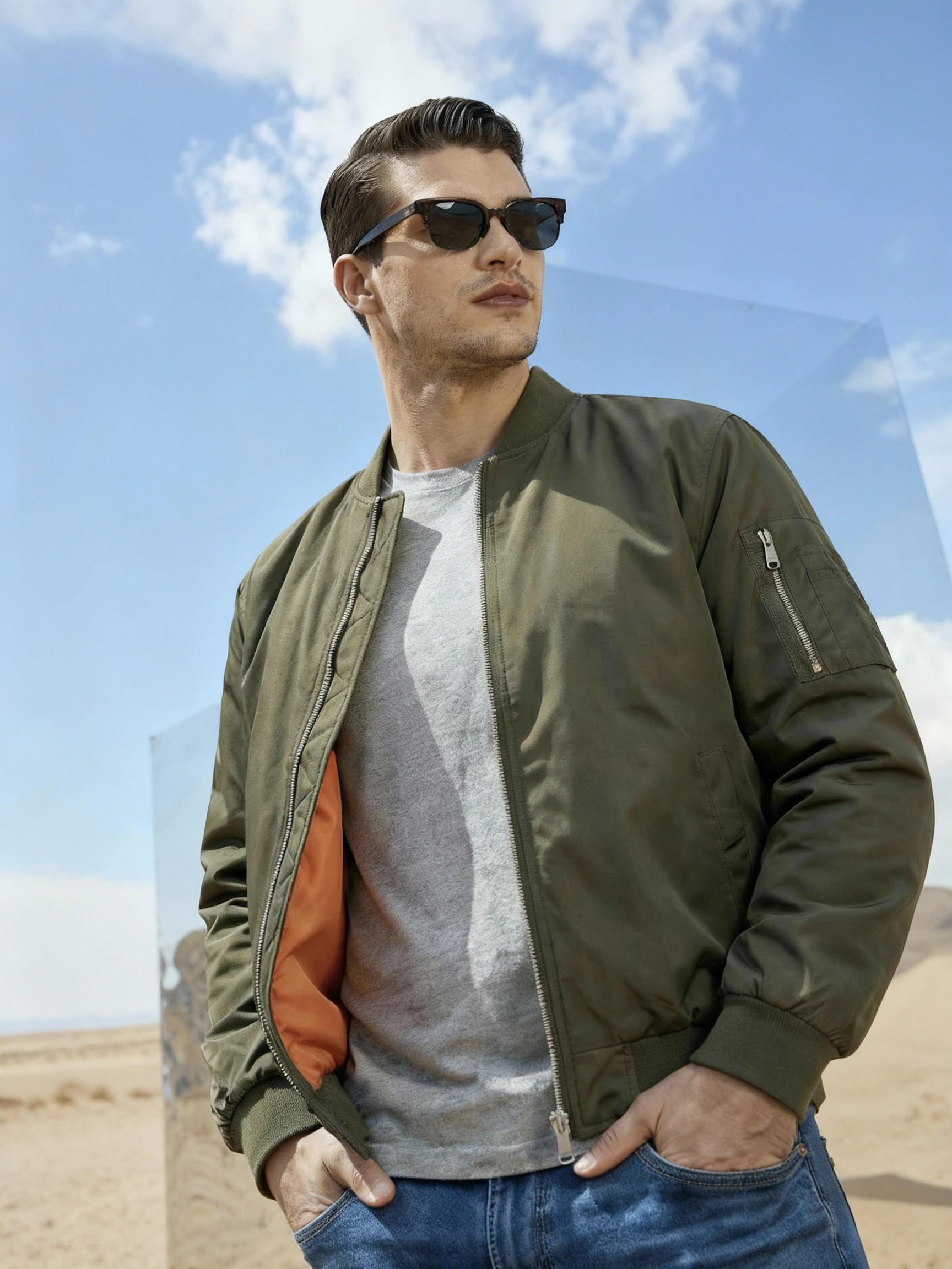 Adoptez le style iconique avec notre bomber nouvelle génération. Léger, imperméable et ultra-tendance, il combine une coupe moderne avec des détails premium : doublure orange signature, zip métallique robuste, et poche utilitaire sur la manche pour un look résolument urbain. Porté avec un jean ou un t-shirt basique, il apporte instantanément une touche stylée et maîtrisée à votre tenue.