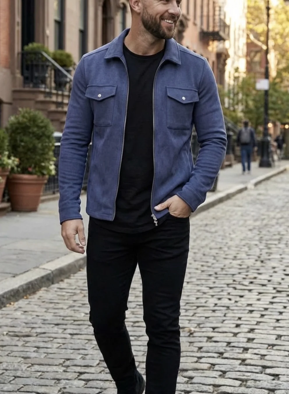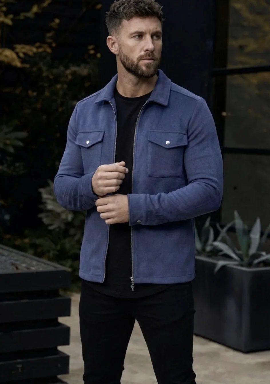 Découvrez la Jacket Bleue, une pièce parfaitement équilibrée entre simplicité et sophistication. Conçue pour ceux qui recherchent l’élégance décontractée, cette veste propose un design épuré avec une texture “brushed” douce qui offre à la fois chaleur et confort.